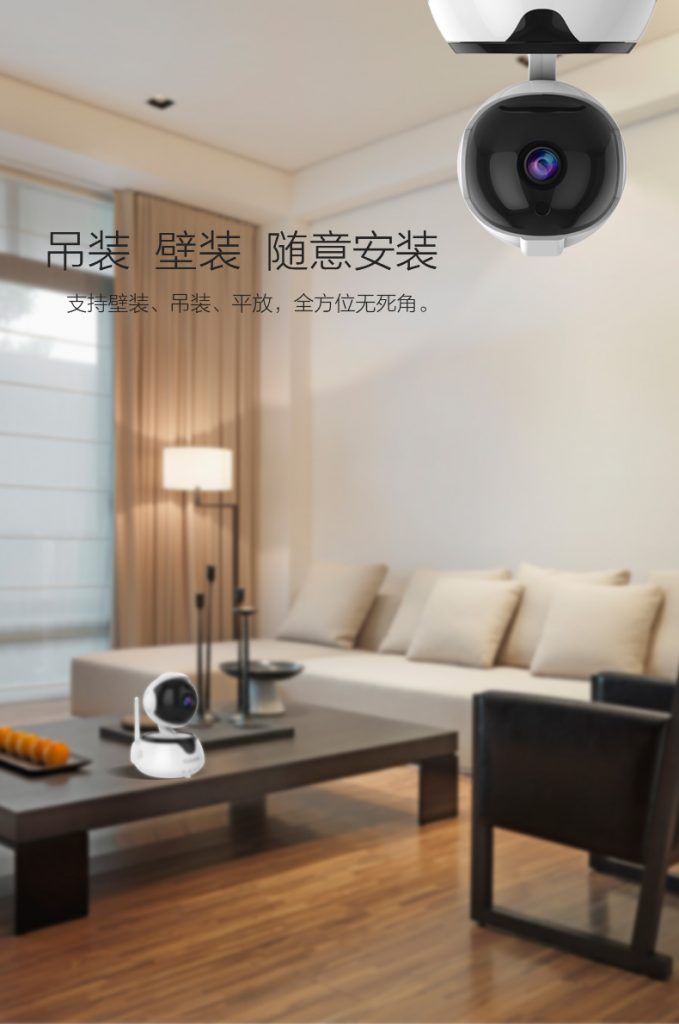 产品名称:室内摄像机1080P 产品型号:EM00402 存储功能:支持TF卡存储(最大128G) 红外距离:6~12m 日夜转换:夜视自动切换红外模式 红 外 灯 :10颗LED 灯 重 量 :300g 镜头可视角度:86° 最佳监控距离:8m左右 传感器有效像素:100万 移动侦测告警:支持 智能家居告警联动录像:支持 双向语音对讲:支持、内置MIC、扬声器 安装方式:桌面安装、墙壁安装、吸顶安装